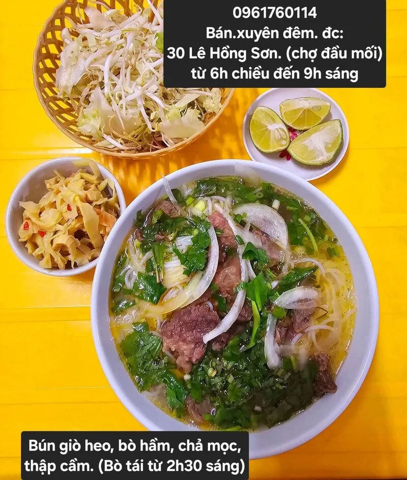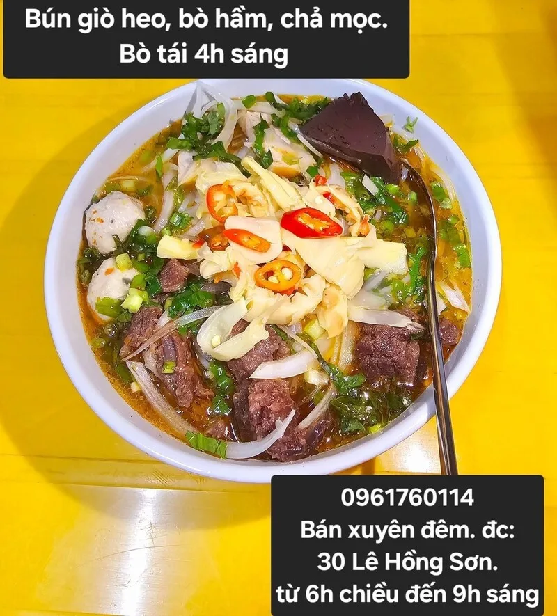 Là một tọa độ ẩm thực quen thuộc cho các bữa ăn đêm tại Vinh, Quán Bún 30 chuyên phục vụ các món bún nóng hổi, chất lượng. Với thời gian hoạt động xuyên đêm và thực đơn tập trung vào các món bò hầm, đây là điểm đến lý tưởng cho thực khách sau một ngày làm việc hoặc vui chơi muộn.