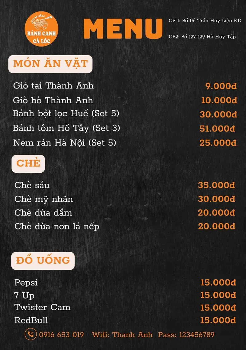 1. Loại hình: Bánh canh cá lóc Thành Anh là một quán ăn bình dân, chuyên về các món ăn đặc sản của xứ Nghệ và miền Trung.