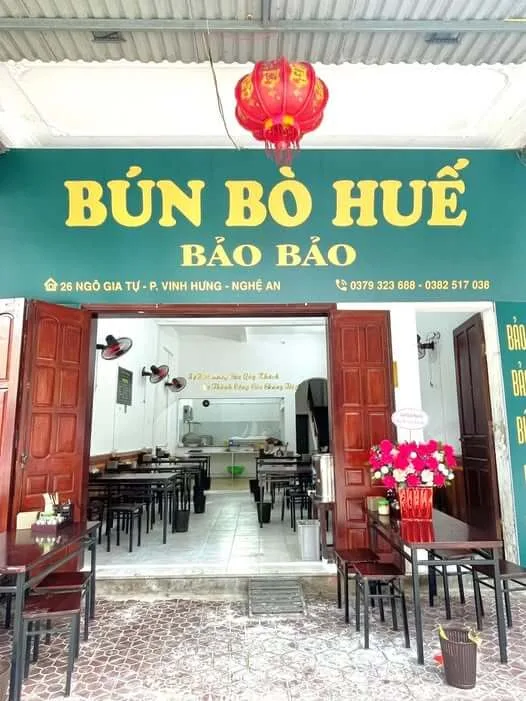 Bún bò Huế Bảo Bảo là một địa chỉ ẩm thực tại thành phố Vinh chuyên phục vụ món bún bò Huế. Quán tập trung vào chất lượng nước dùng và sự phong phú của các loại topping, mang đến cho thực khách một bữa ăn ngon miệng, đúng chuẩn hương vị Huế truyền thống.