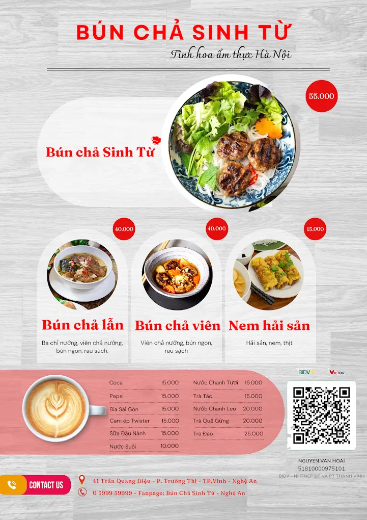 Bún Chả Sinh Từ là một thương hiệu bún chả lâu đời và trứ danh, có nguồn gốc từ Hà Nội. Với hương vị thơm ngon, đậm đà, quán thu hút đông đảo khách hàng ghé và trải nghiệm.