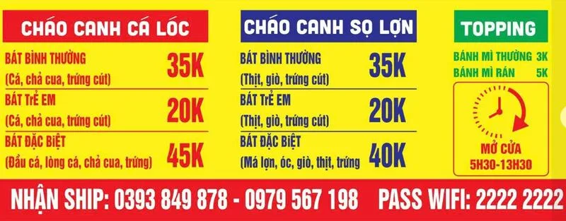 Thực đơn của quán tập trung vào món cháo canh gia truyền và một biến tấu mới mẻ:
