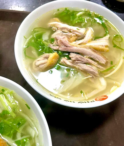2. Món đặc sắc: Điểm nhấn nổi bật và làm nên thương hiệu của quán chính là món Phở Gà Đông Tảo. Món ăn được đánh giá cao nhờ sử dụng thịt gà Đông Tảo săn chắc, dai ngọt và đặc biệt là nước dùng được cam kết hầm hoàn toàn từ xương gà, ngọt thanh tự nhiên, không sử dụng phụ gia.