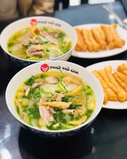 Phở Hồ Gia là điểm đến lý tưởng cho tín đồ phở gà tại TP. Vinh, nổi bật với nguyên liệu gà Đông Tảo – giống gà quý với thịt săn chắc, da giòn béo nhẹ, kết hợp cùng nước dùng trong, ngọt thanh được hầm kỹ từ xương gà. Từng tô phở tại đây là sự hòa quyện giữa bánh phở mềm dai, thịt gà ngọt tự nhiên và hành hoa thơm lừng, mang đến trải nghiệm phở gà độc đáo, khó quên.