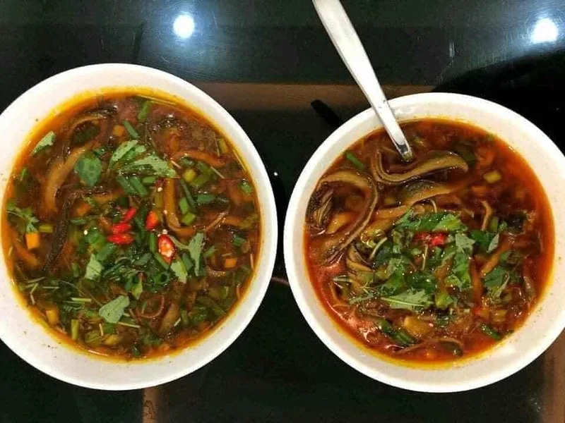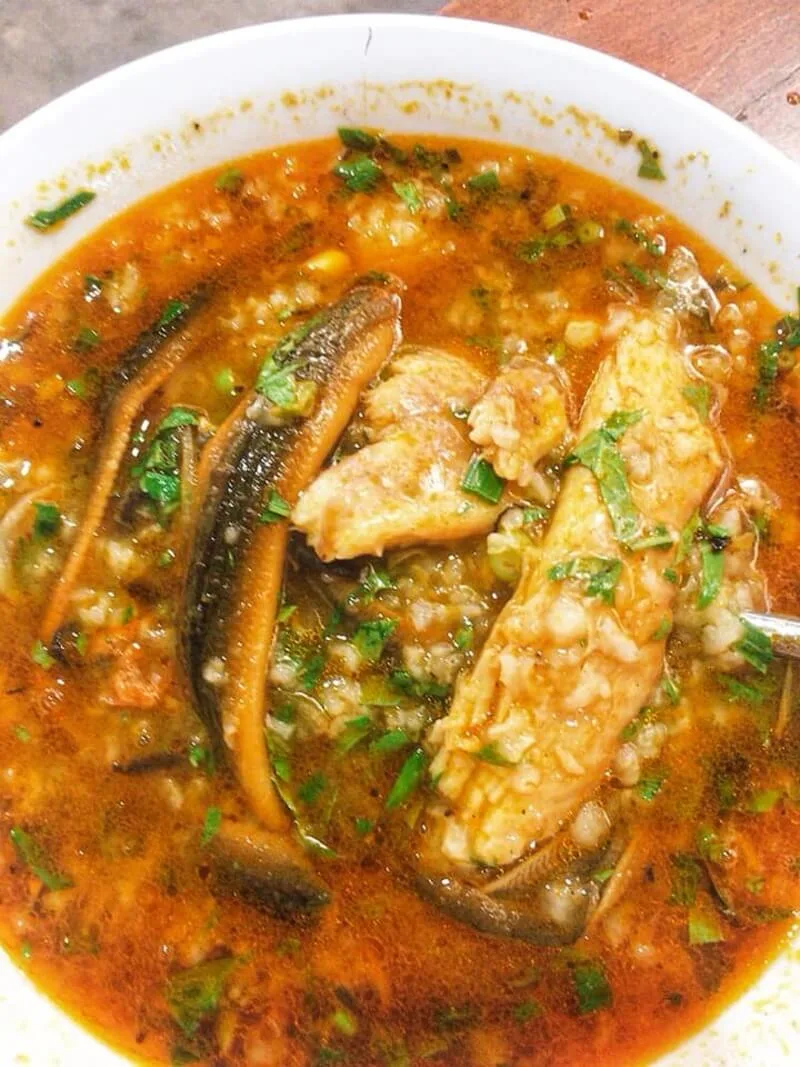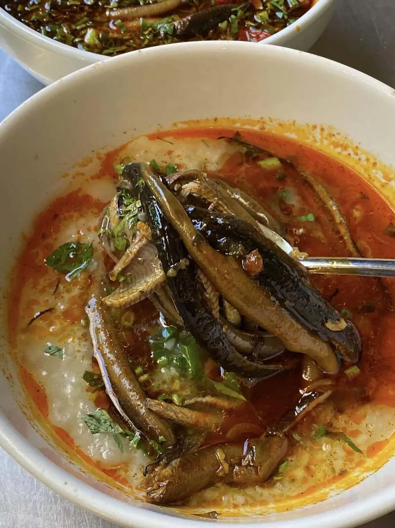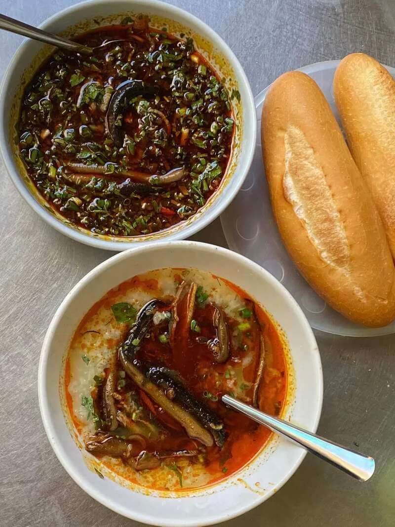 2. Món đặc sắc: Cháo lươn cay. Món cháo được nấu sánh mịn, quyện với thịt lươn đồng được xào săn chắc. Điểm nhấn chính là vị cay nồng từ ớt tươi và ớt chưng, kết hợp với mùi thơm của hành tăm, tiêu và rau răm, tạo nên một tổng thể bùng nổ hương vị.