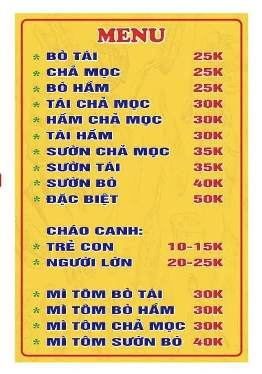 1. Loại hình: Quán ăn sáng, trưa chuyên Bún, Phở.