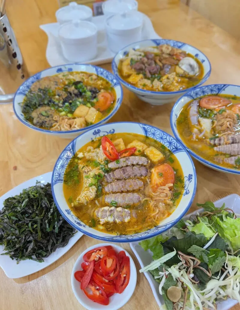 Thực đơn của bếp tập trung vào các món bún nước chất lượng, bao gồm: