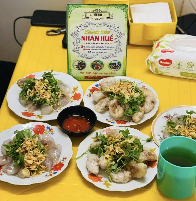 Với thâm niên hơn 25 năm trong nghề, Bánh bèo Nhàn Huế là cái tên bảo chứng cho hương vị truyền thống tại Vinh. Bánh bèo rán ở đây mang phong vị Huế đặc trưng nhưng được gia giảm để hợp khẩu vị người Nghệ. Nhân bánh tôm thịt băm nhuyễn xào khô đậm đà, vỏ bánh chiên phồng nhẹ, ăn kèm nước mắm pha màu cam đẹp mắt, vị hài hòa chua cay mặn ngọt.