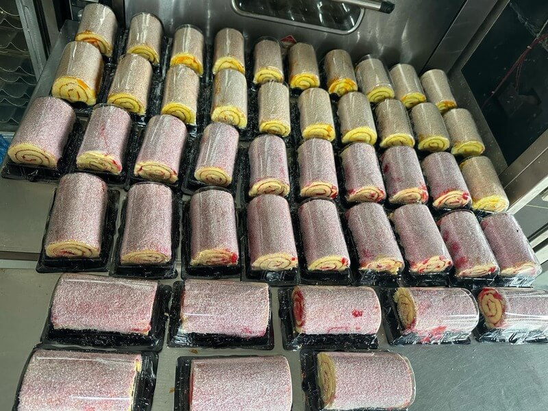 Dòng bánh bông lan cuộn tại đây được sản xuất theo quy trình công nghiệp kiểm soát chặt chẽ, đảm bảo chất lượng đồng đều. Bánh có cốt mềm vừa phải, dễ ăn, hương vị ổn định và được đóng gói sẵn rất tiện lợi để mua mang đi xa hoặc ăn sáng vội vàng.