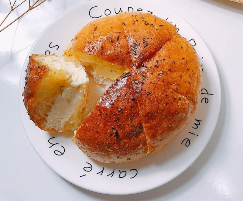 Dòng bánh mì bơ tỏi tại đây mang đậm phong cách Hàn Quốc với lớp vỏ bánh siêu mềm, gần như tan ngay trong miệng chứ không hề khô cứng. Sốt bơ tỏi bóng mượt, được xử lý khéo để không còn vị cay nồng, kết hợp cùng nhân kem phô mai sánh mịn, chua nhẹ giúp trung hòa vị béo tuyệt vời, khiến bạn ăn hoài không chán.
