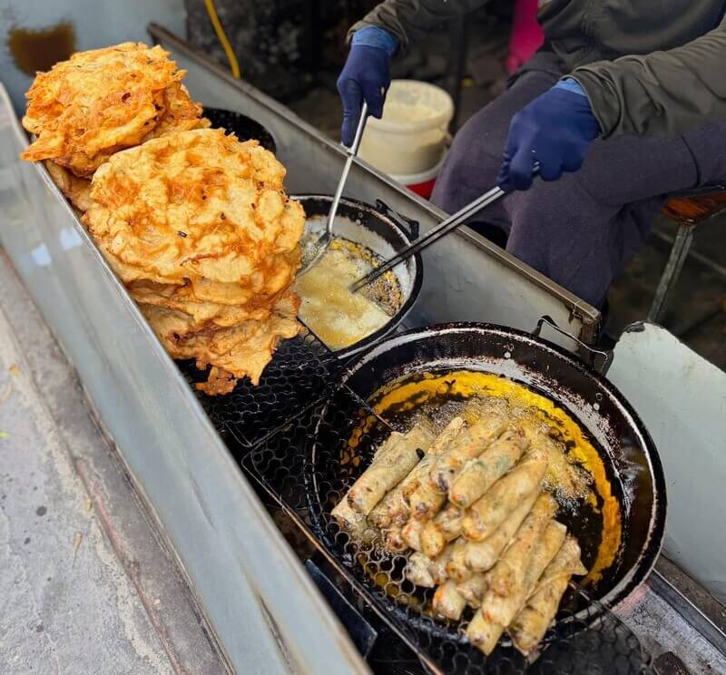 - 🏘️ Khu ẩm thực tuổi thơ: Bánh rán hành Vân Trung ở chợ Quang Trung