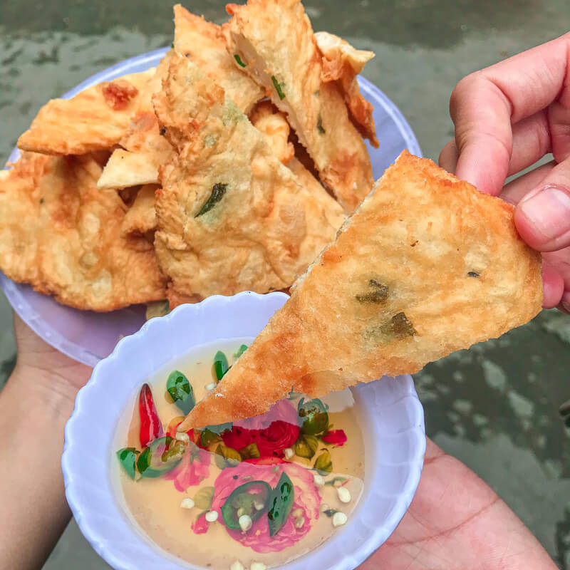 - 💲 Giá tham khảo: 15.000đ/cái (Bánh rán hành); 20.000đ/3 cái (Bánh tôm).