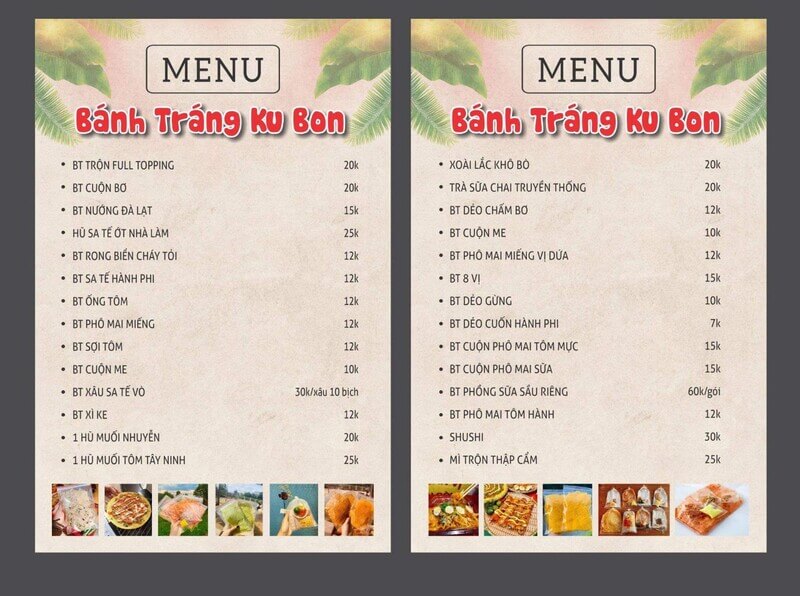 Thực đơn quán đa dạng, phong phú, hấp dẫn mọi thực khách