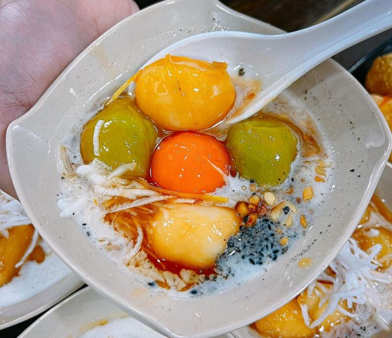 Những viên bánh tròn trịa, nhân đậu xanh hoặc mè đen bùi béo được thả trong nước đường gừng nóng hổi, thơm phức, rất thích hợp để sưởi ấm trong những ngày đông. Bát bánh thường được phủ thêm chút lạc rang giòn và nước cốt dừa béo ngậy, tạo nên sự cân bằng hoàn hảo và tinh tế.