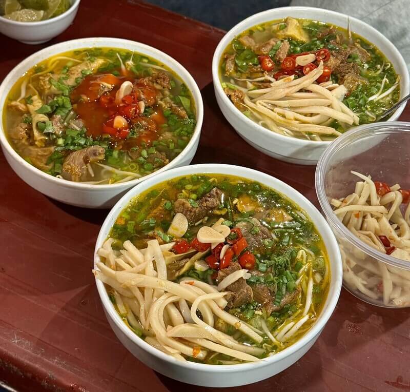 Khác với Bún bò Huế nồng nàn mắm ruốc, bún bò hầm ở Vinh chinh phục thực khách bởi nước dùng trong veo ngọt lịm từ xương và những miếng thịt bò to bản được hầm mềm tơi, tan ngay trong miệng. Toplist Nghệ An sẽ mách bạn những địa chỉ "chân ái" để nạp năng lượng, dù là bữa sáng vội vã hay bát bún giải rượu lúc đêm muộn.
