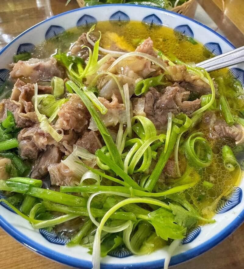 Đặng Khang là địa chỉ mới nổi nhưng nhanh chóng chiếm được cảm tình nhờ chất lượng ổn định. Thịt bò ở đây được thái miếng to bản, hầm mềm nhưng vẫn giữ được độ gân trong giòn sần sật rất đã miệng. Nước dùng được nấu theo phong cách "dịu vị", không quá nặng mùi thảo mộc, điểm xuyết thêm củ hành tím chần tái ngọt lịm, tạo nên hương vị rất riêng biệt và dễ ăn.