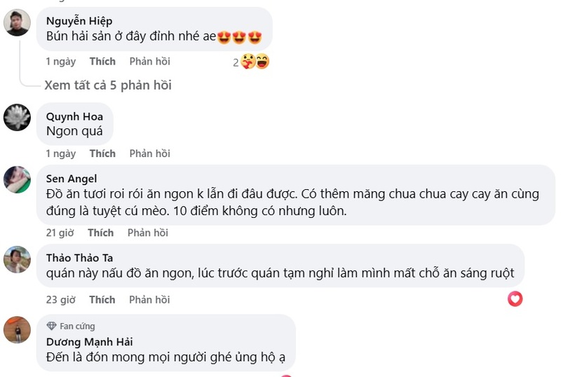 Đánh giá của người dùng trên hội nhóm facebook về bún hải sản Mẹ Nhím