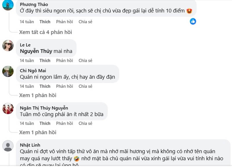 Những đánh giá của người dùng trên hội nhóm facebook về quán Vị Hương