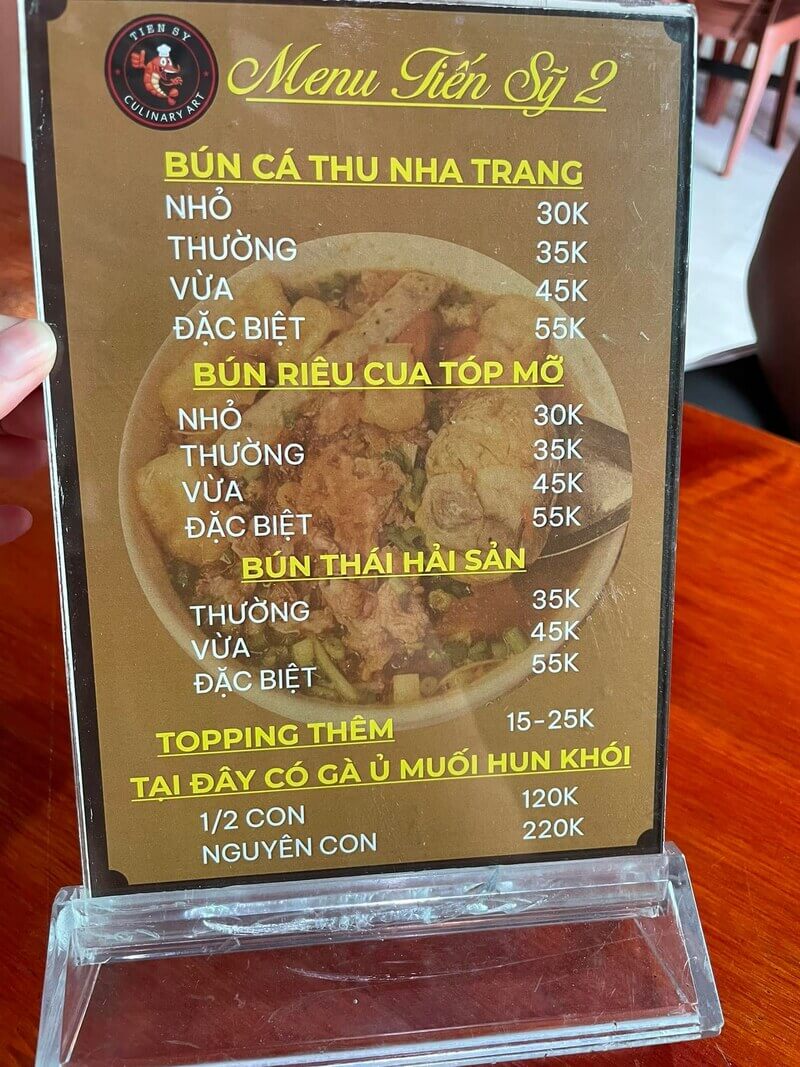 Menu đa dạng, phong phú tại quán bún hải sản Tiến Sỹ