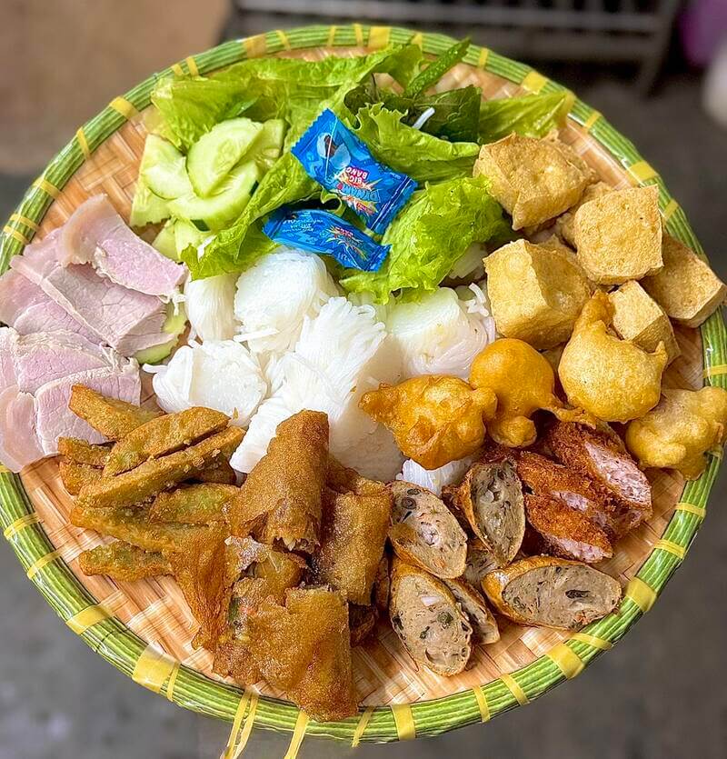 Dân Bùi chinh phục khách hàng bằng sự chỉn chu trong từng chi tiết mẹt bún. Đậu rán ở đây nổi tiếng "vàng ươm", giòn rụm nhưng bên trong vẫn béo ngậy vị đậu nành. Đặc biệt, món dồi sụn nướng thơm nức, sần sật là món "best-seller" mà ai đến cũng phải gọi thêm một đĩa ăn cho đã.