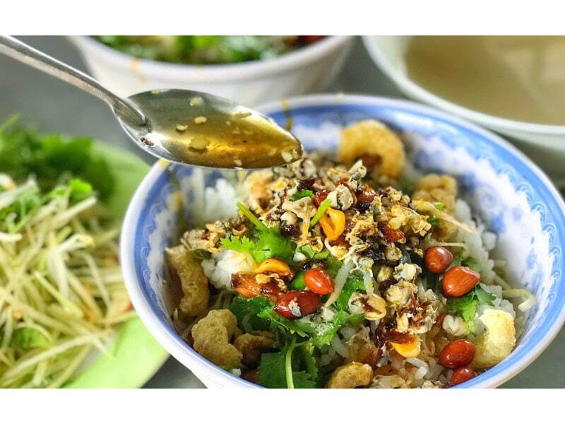 Một tô bún hến ở đây là bản giao hưởng của vị giác: vị ngọt của hến xào săn, vị bùi của lạc rang, độ giòn rụm của tóp mỡ và da heo chiên. Tất cả được trộn đều với mắm ruốc và ớt chưng cay nồng, tạo nên một hương vị kích thích khiến bạn vừa ăn vừa xuýt xoa nhưng không thể dừng đũa.