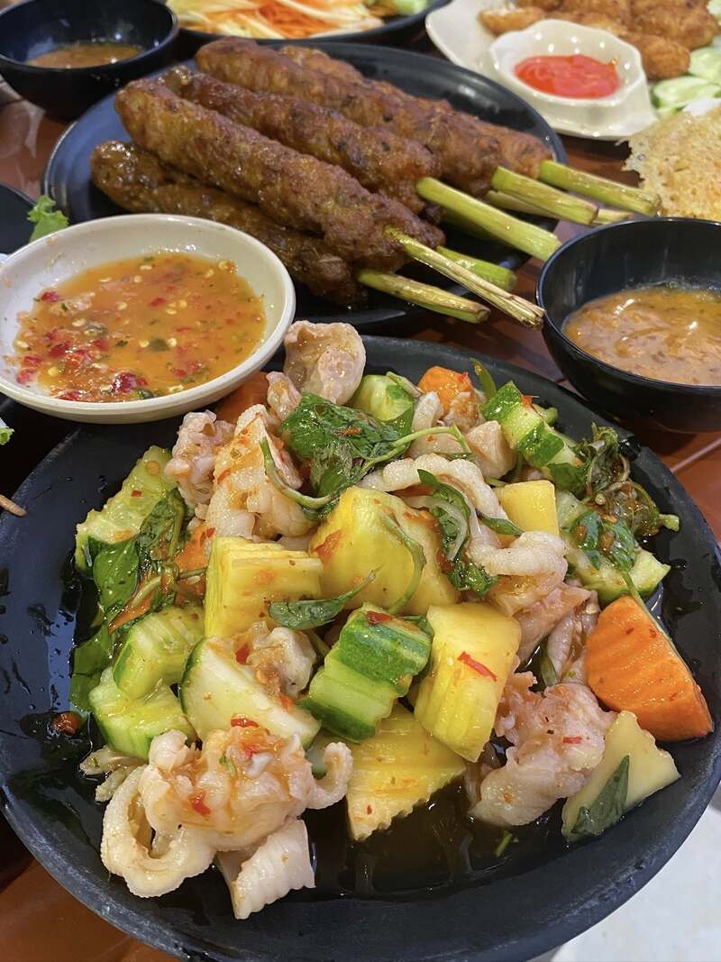 Ngoài sốt Thái, quán cực nổi tiếng với món chân gà nướng và cánh gà nướng. Chân to, nhiều thịt, tẩm ướp đậm đà và nướng trực tiếp tại chỗ nên bạn có thể yêu cầu nướng kỹ hay xém cạnh tùy thích.