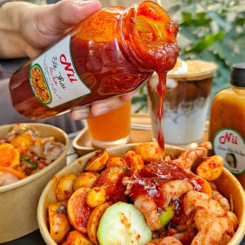 Ngoài đồ ăn liền, quán còn bán các set nguyên liệu (chân gà, sốt, nước chấm) để khách mua về tự trộn, rất tiện lợi cho dịp Tết hoặc tụ tập tại nhà. Không gian quán vỉa hè thoáng mát, sạch sẽ với 2 mặt tiền thoải mái ngồi lai rai.