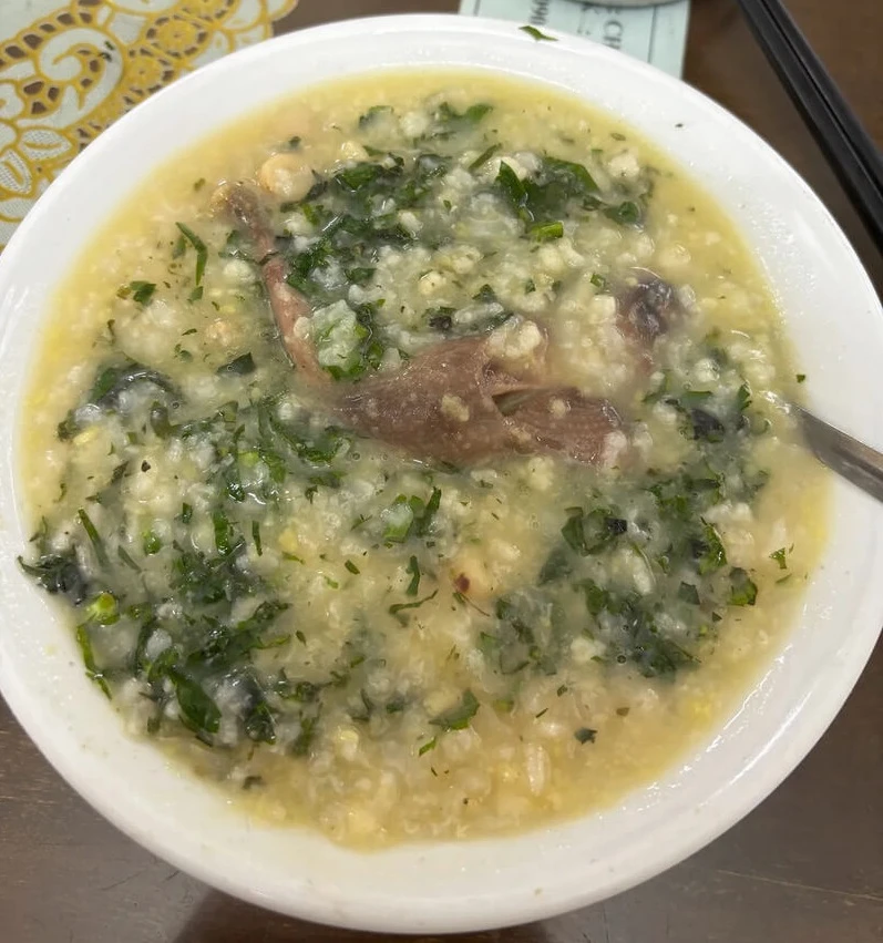 🥣 Must-try (Nên gọi): Cháo bồ câu tần thuốc bắc cách thủy (nguyên con).