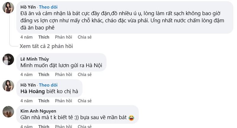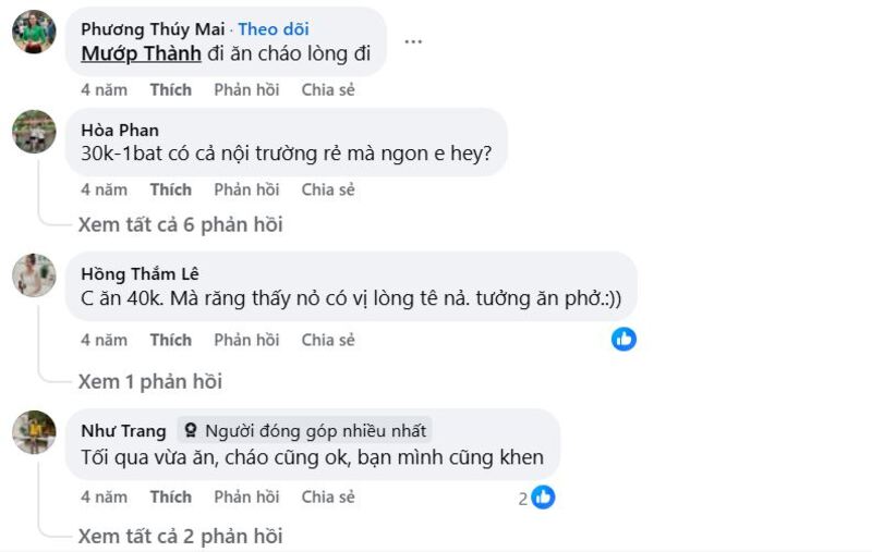 Những đánh giá của người dùng trên hội nhóm facebook sau khi thưởng thức tại cháo lòng Hưng Bình