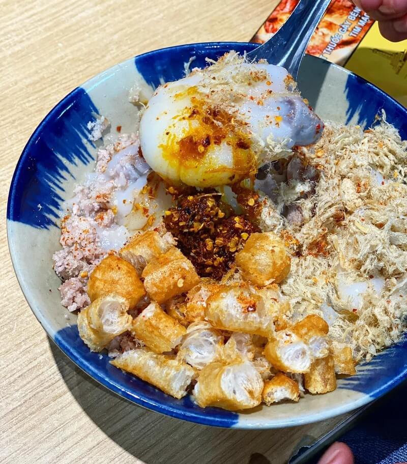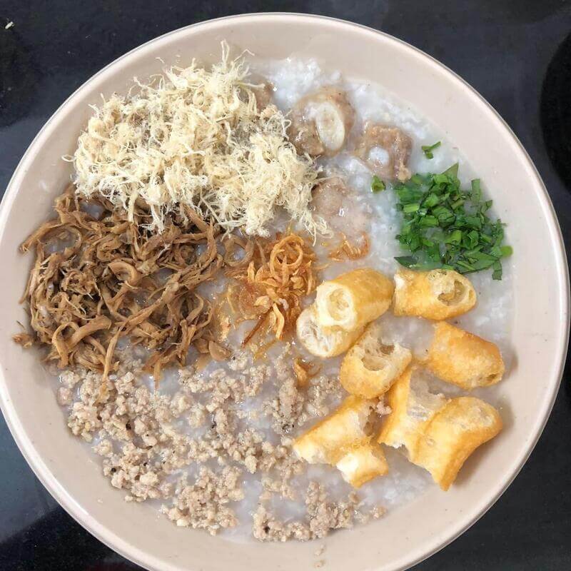 Bát cháo nóng hổi tại đây trở nên hấp dẫn hơn bao giờ hết nhờ sự kết hợp của ruốc nấm hương thơm lừng hoặc ruốc thịt đậm đà. Thêm vào đó là những miếng quẩy được cắt nhỏ giòn rụm, tạo nên sự đối lập thú vị về kết cấu khi thưởng thức. Đây là địa điểm ăn nhẹ lý tưởng cho giới trẻ và dân văn phòng vào mỗi buổi chiều.