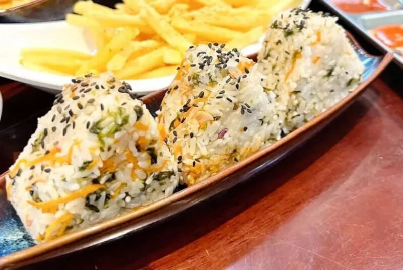 Nếu bạn thuộc team "xôi thịt", thích cơm nắm là phải có nhân bên trong mới đã, thì ghé ngay Korea Chicken House. Quán không chỉ nổi tiếng về gà rán mà còn nâng tầm món cơm nắm với phần nhân được chế biến cầu kỳ như một món chính thu nhỏ, đảm bảo ăn là no căng bụng.
