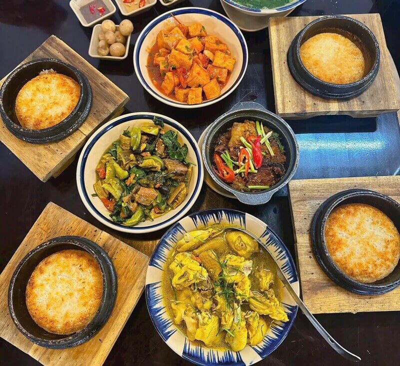 Thực đơn quán rất đa dạng, từ các món truyền thống như Cơm thố Gà nướng (hương vị quê hương), Cơm thố Xá xíu đến các món lạ miệng như Cá lóc kho tộ, Cơm thố Dương Châu. Không gian quán tại Lý Thường Kiệt rộng rãi, thoáng mát, decor hiện đại, mang lại cảm giác thư thái cho giờ nghỉ trưa.