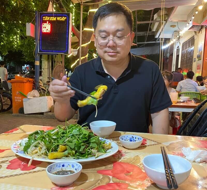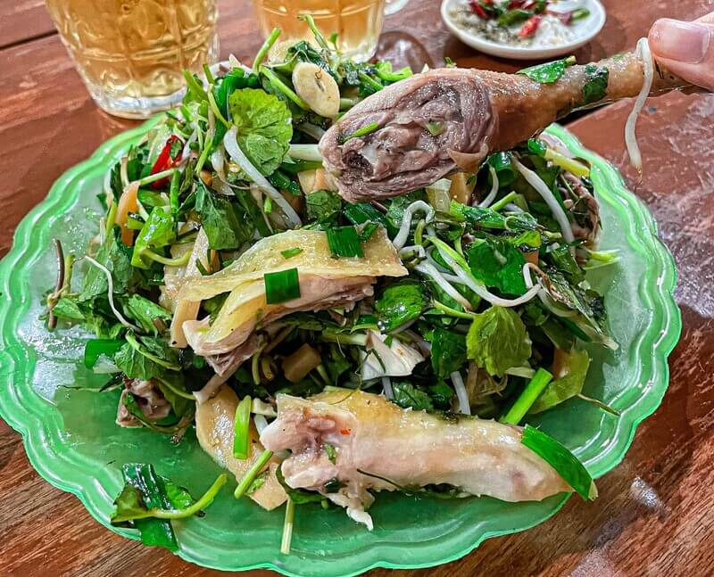 Để món gà bóp thêm phần trọn vẹn, người Vinh thường có cách thưởng thức rất riêng: