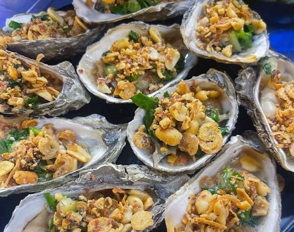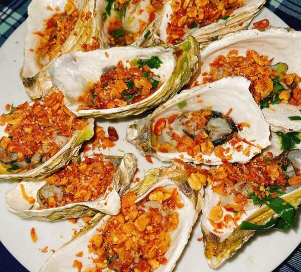 Quán hàu nướng mỡ hành ở Vinh luôn là điểm hẹn quen thuộc của những tín đồ mê hải sản, đặc biệt vào buổi tối mát trời. Hàu tươi béo ngậy, nướng vừa lửa, phủ lớp mỡ hành thơm lừng cùng chút đậu phộng bùi bùi tạo nên hương vị giản dị mà cuốn hút, ăn một lần là khó quên.