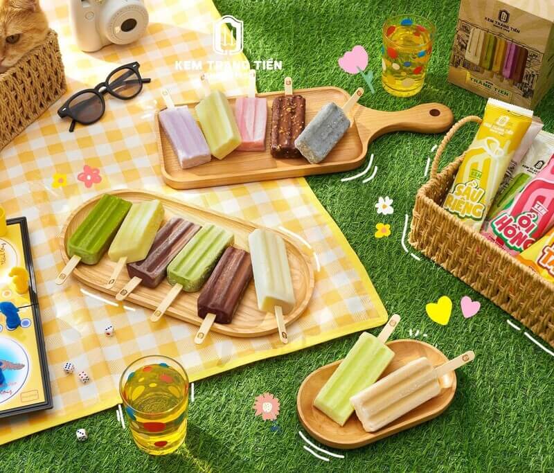 Để bắt kịp xu hướng, Tràng Tiền đã ra mắt bộ 3 Kem trái cây (Sầu riêng, Mơ tây, Ổi hồng) và bộ sưu tập Kem Trà Xanh (Matcha) với lớp vỏ socola giòn rụm hoặc vỏ mochi dẻo dai.