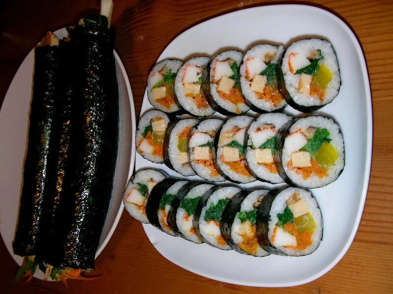 Dù nổi tiếng với các món mì cay chuẩn vị, nhưng Changwon vẫn phục vụ món cơm cuộn như một món ăn kèm phổ biến không thể thiếu. Cơm cuộn ở đây có vị nhạt và thanh đạm hơn so với các quán chuyên biệt, được chế biến đơn giản để giúp làm dịu đi vị cay xé lưỡi của món mì "signature", tạo nên sự cân bằng vị giác hoàn hảo.