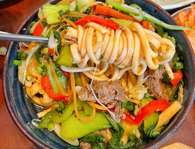 Món mì trộn ở Nhà Chic.Ken Korea không chỉ đáp ứng được nhu cầu của những người yêu thích các món ăn Hàn Quốc mà còn gây ấn tượng mạnh với những món ăn kèm sáng tạo, khiến bạn thưởng thức mãi không ngừng.