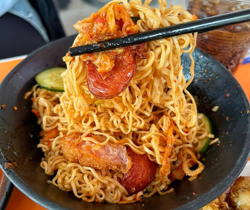 Món mì trộn còn được bổ sung với gà rán sốt kem, có lớp vỏ ngoài giòn rụm và phần thịt bên trong mềm ngọt, hòa quyện hoàn hảo với nước sốt kem béo ngậy.