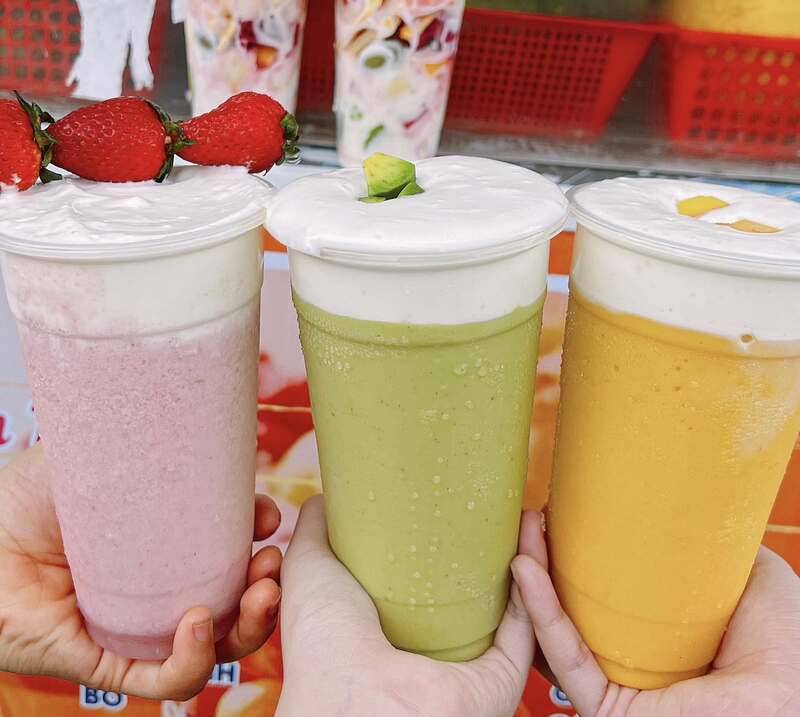 Smoothie Xoài – Dâu – Bơ, Hoa quả dầm. |