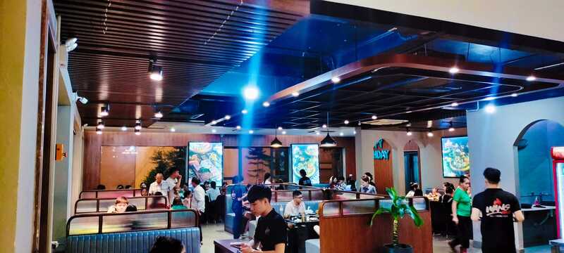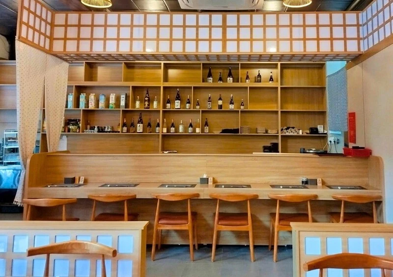 Không gian quán ngập tràn ánh đèn lồng đỏ ấm áp, rất phù hợp để tụ tập bạn bè "lai rai" sau giờ làm việc. Bên cạnh sashimi, bạn còn được thưởng thức thịt nướng xèo xèo và lẩu Nhật nghi ngút khói, tất cả trong một mức giá buffet hợp lý.