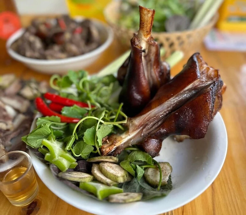 Trung Hương nổi bật với các món chế biến khô như nướng và rán. Món thịt chó nướng ở đây có lớp da giòn tan, thịt bên trong mềm mọng, đậm đà gia vị đặc trưng. Một món khác rất đáng thử là sườn rán vàng ruộm, giòn rụm bên ngoài nhưng vẫn giữ được độ ngọt mềm bên trong, ăn cùng chút cay nhẹ rất hợp.