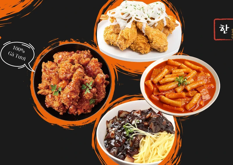 - 🍗 Gà Rán & Tokbokki: Chicken House Korea, Han-Chick'n - Combo gà sốt và bánh gạo cay "chân ái".