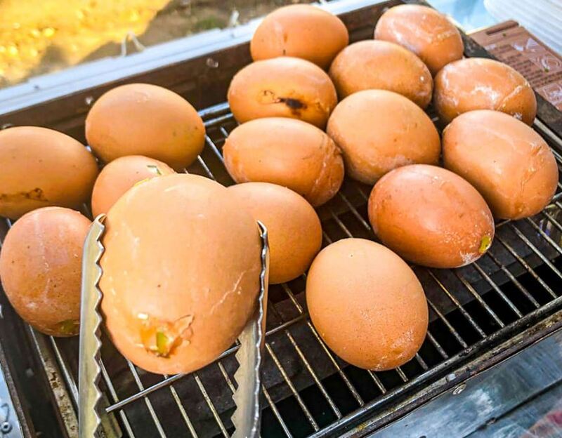 Nổi đình nổi đám với các món ăn vặt chuẩn vị Sài Gòn, Bánh tráng trộn Chú Kim không chỉ có bánh tráng trộn ngon mà trứng gà nướng cũng là một "cực phẩm" không thể bỏ qua. Tại đây, trứng gà nướng không chỉ là món ăn chơi mà còn đóng vai trò cân bằng vị giác hoàn hảo khi kết hợp cùng các món bánh tráng cay nồng.