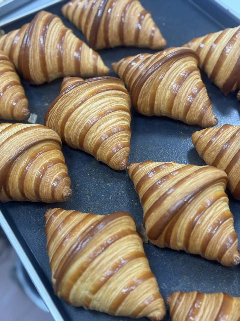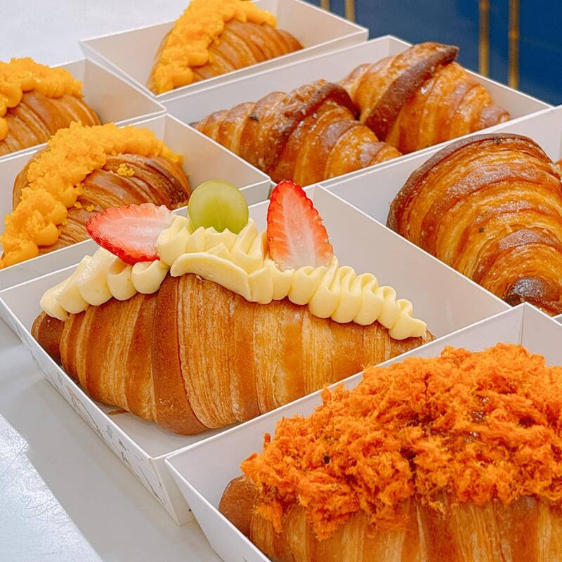 Ngôi sao của tiệm chính là bánh sừng bò nhân trứng muối. Sự kết hợp giữa vị béo ngậy, mặn mà của sốt trứng muối tan chảy bên trong lớp vỏ giòn rụm tạo nên một trải nghiệm vị giác bùng nổ. Ngoài ra, tiệm còn có dòng bánh sừng bò không nhân (đông lạnh) để khách mua về tự nướng, rất tiện lợi cho bữa sáng tại gia.