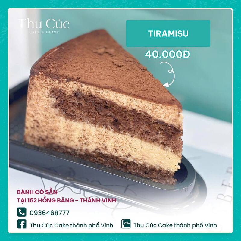 Thu Cuc Cake tự hào là đối tác sử dụng bơ sữa Elle & Vire trứ danh của Pháp, minh chứng cho chất lượng nguyên liệu thượng hạng. Tiramisu hộp tại đây có hai kích cỡ (nhỏ/to), được xử lý theo kỹ thuật bánh Âu hiện đại: Kem bông nhẹ, cấu trúc hài hòa, giữ được đặc tính nguyên bản của nguyên liệu.