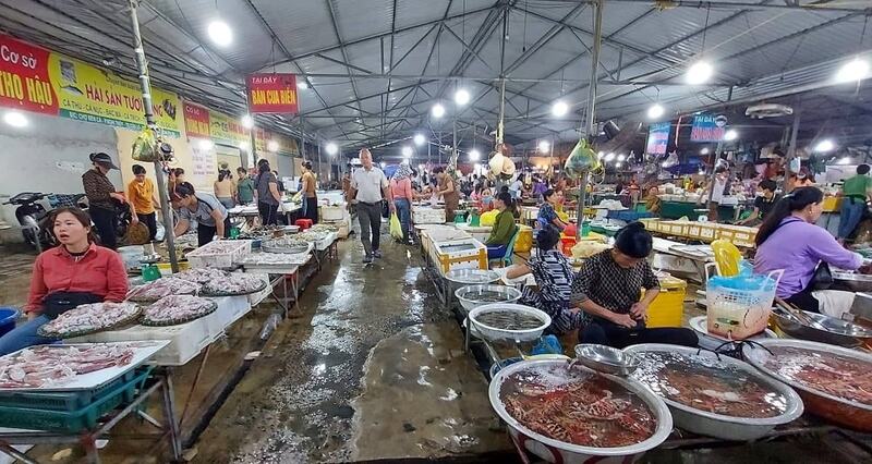 - Đặc điểm: Chợ nằm ở vị trí trung tâm, gần cuối bãi tắm và đảo Lan Châu, rất thuận tiện cho du khách. Chợ không chỉ bán hải sản mà còn có vô số mặt hàng khác từ đồ khô, nước mắm, ruốc, các loại bánh đặc sản đến rau củ quả và đồ lưu niệm.