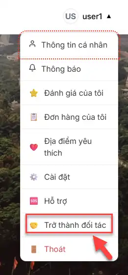 3. Bước 3: Đăng nhập tài khoản và click vào "Trở thành đối tác" ở menu góc phải trên cùng của màn hình như hình dưới