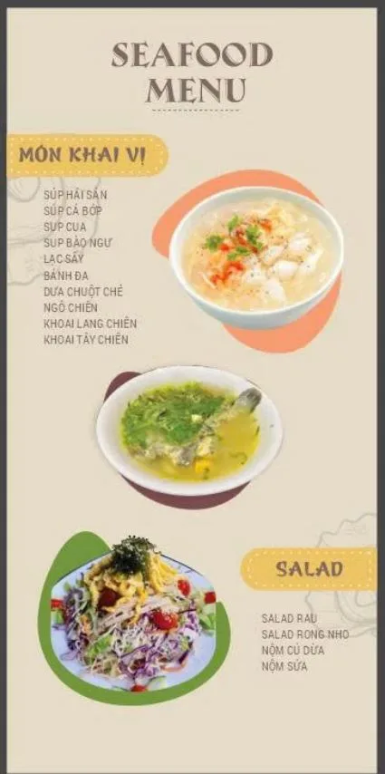 Thực đơn của quán là một hành trình khám phá hương vị biển cả: