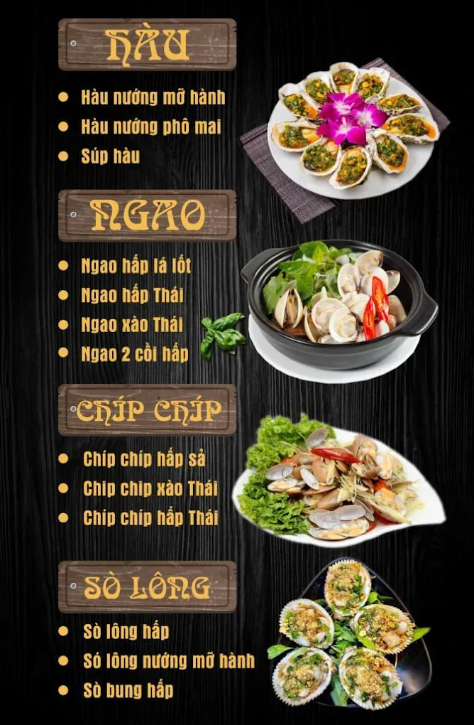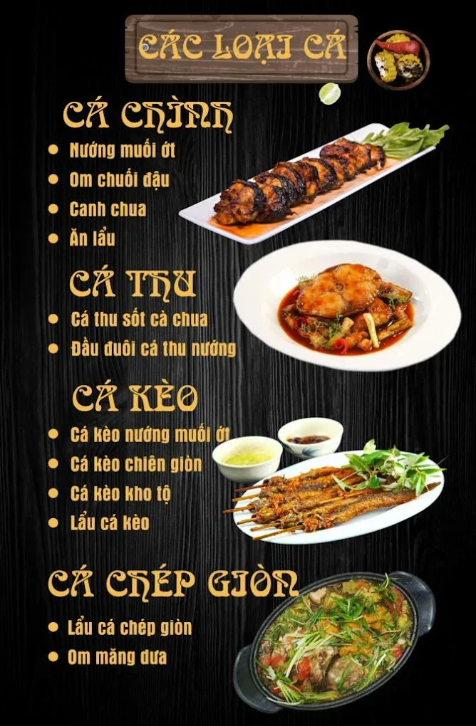 Thực đơn của quán rất phong phú, từ hải sản, đồ đồng quê đến các món lẩu: