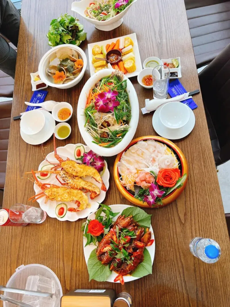 Thực đơn của nhà hàng tập trung vào các loại hải sản tươi sống được chế biến đa dạng: