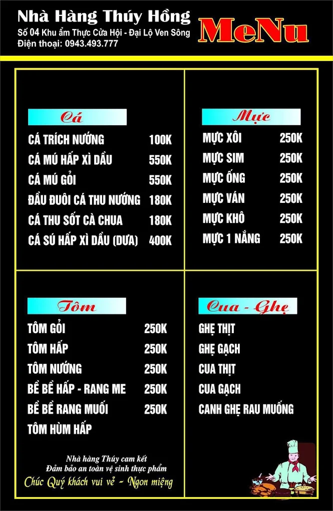 - Chính sách chất lượng: Đảm bảo hải sản tươi ngon, khách hàng có thể kiểm tra trước khi chế biến.